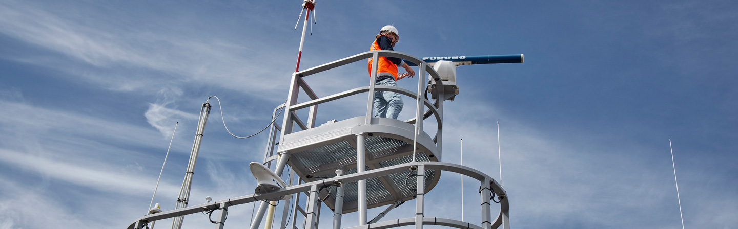 Am Montag, den 27. März 2023, war Julius von Bismarck am CML zu Gast. Er hat das Kunstwerk „Ocean Apparatus“ geschaffen. Dabei handelt es sich um vier rote Bojen, die hoch oben an unserem Forschungsgebäude im Harburger Binnenhafen angebracht sind. Sie bewegen sich wie echte Bojen auf dem offenen Meer. Diese Bewegungen basieren auf realen Wellenmessdaten von Bojen auf dem offenen Meer. Am Montag sprach Julius von Bismarck mit uns über seinen Schaffensprozess und seine Gedanken zu „Ocean Apparatus".
