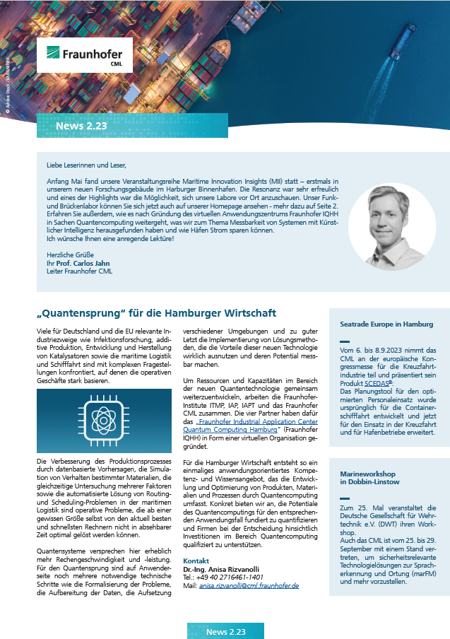 Newsletter 2.23 vom 28. Juni 2023: Quantencomputing - Anwendungsorientiertes Angebot für die Hamburger Wirtschaft + VerifAI - Neue Studie zur Prüfung von KI-Systemen + dashPORT - So sparen Häfen Strom und Kosten